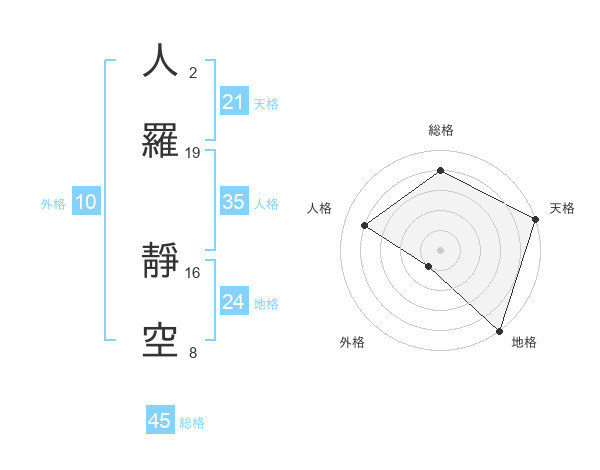 人羅 靜空さんを姓名の画数から五運を鑑定