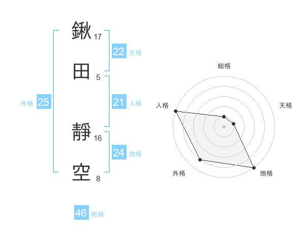 鍬田 靜空さんを姓名の画数から五運を鑑定