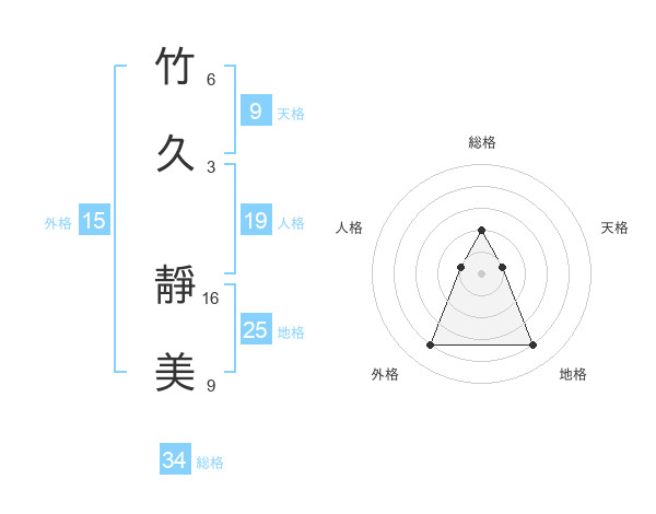 竹久 靜美さんを姓名の画数から五運を鑑定