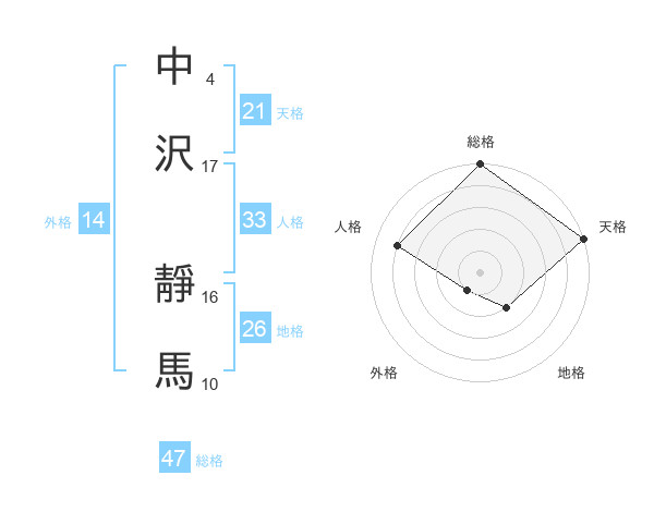 中沢 靜馬さんを姓名の画数から五運を鑑定