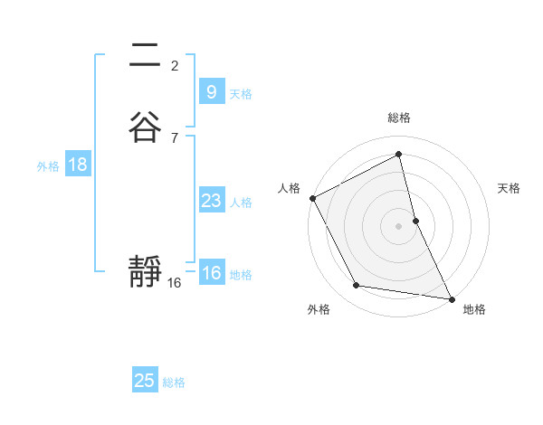 二谷 靜さんの外格は18画の4点!