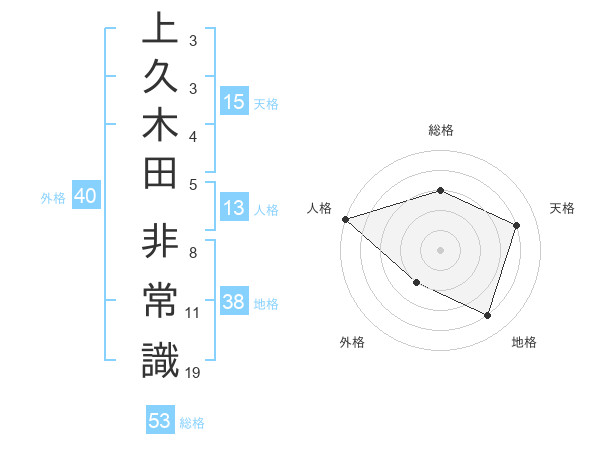 上久木田 非常識さんの地格は38画の4点!