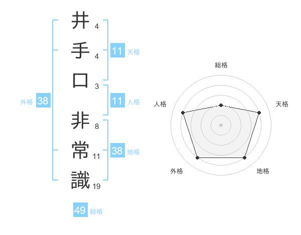 井手口 非常識さんを姓名の画数から五運を鑑定