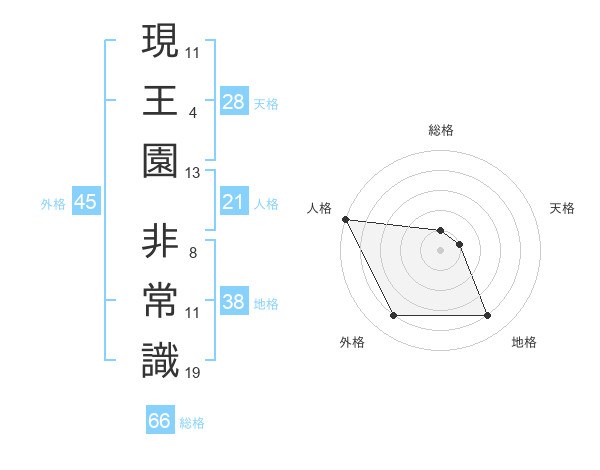 現王園 非常識さんの総格は66画の1点!