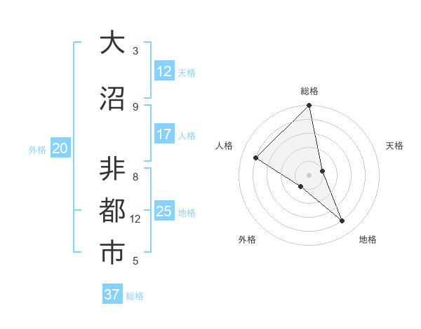大沼 非都市さんを姓名の画数から五運を鑑定