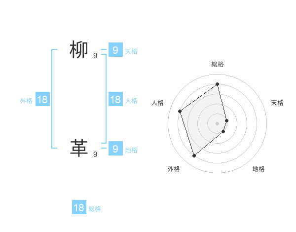 柳 革さんの総格は18画の4点!