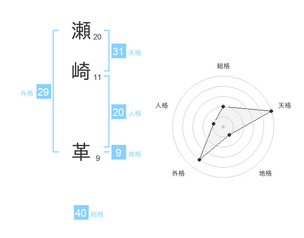 瀬崎 革さんを姓名の画数から五運を鑑定