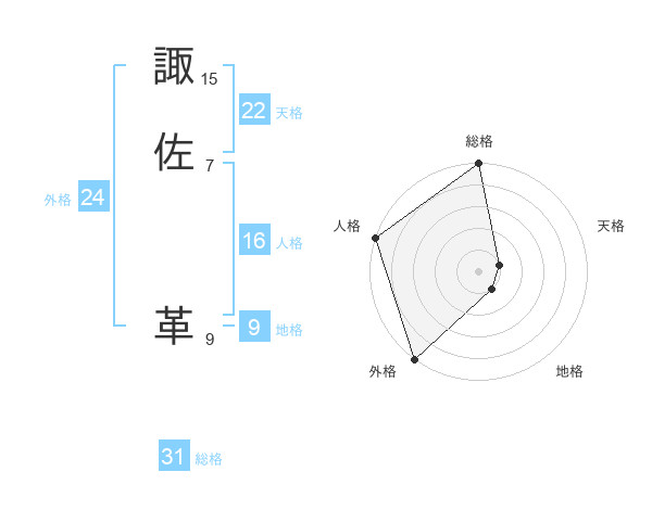 諏佐 革さんの総格は31画の5点!