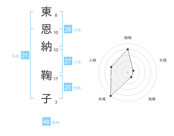 東恩納 鞠子さんを姓名の画数から五運を鑑定