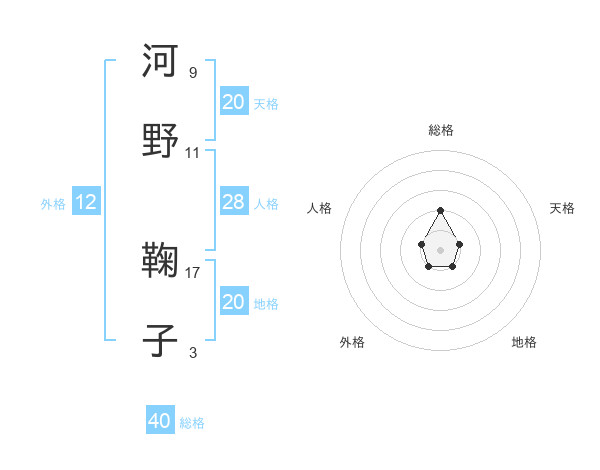 河野 鞠子さんの天格は20画の1点!
