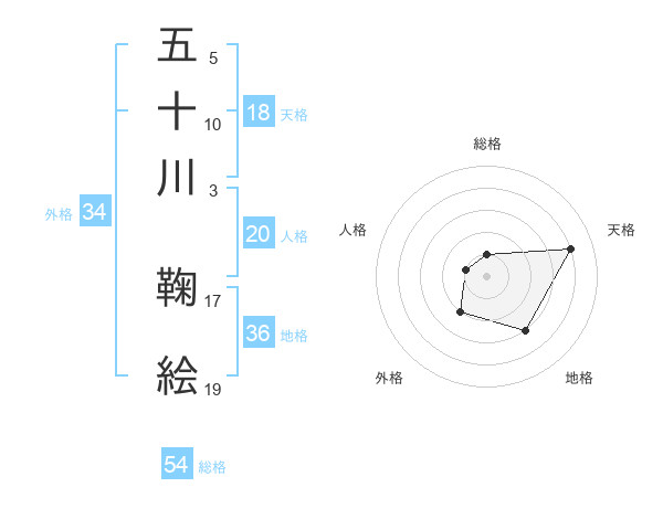 五十川 鞠絵さんを姓名の画数から五運を鑑定