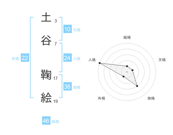 土谷 鞠絵さんを姓名の画数から五運を鑑定
