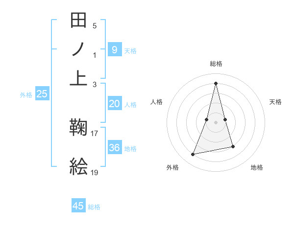 田ノ上 鞠絵さんの総格は45画の4点!