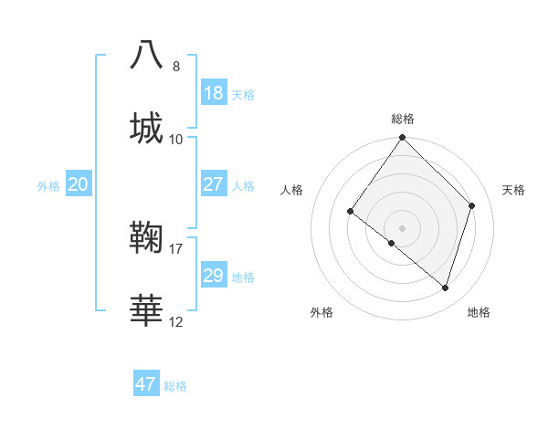 八城 鞠華さんの総格は47画の5点!