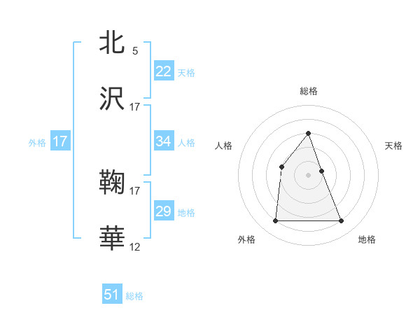 北沢 鞠華さんを姓名の画数から五運を鑑定