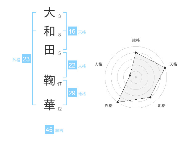 大和田 鞠華さんの外格は23画の5点!