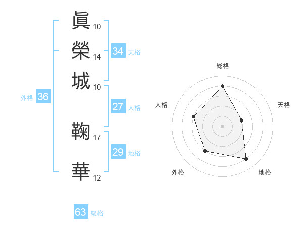 眞榮城 鞠華さんを姓名の画数から五運を鑑定