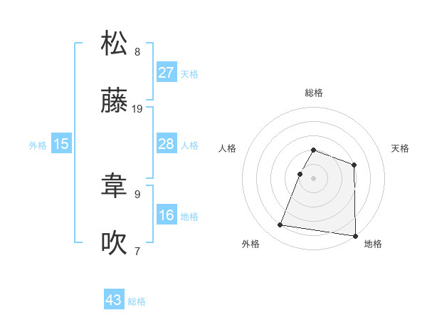 松藤 韋吹さんの総格は43画の2点!