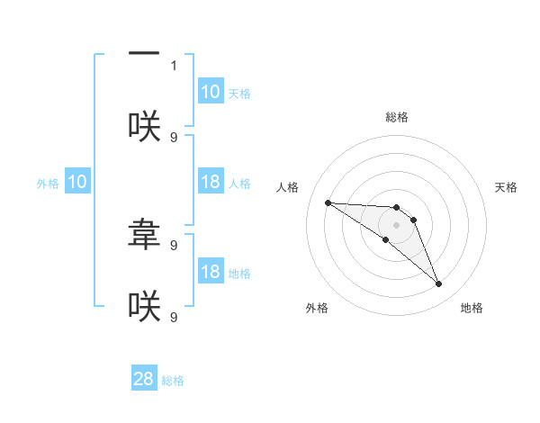 一咲 韋咲さんを姓名の画数から五運を鑑定