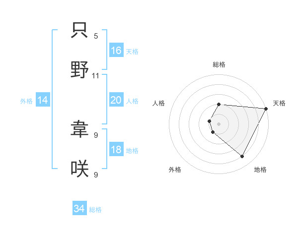 只野 韋咲さんの天格は16画の5点!
