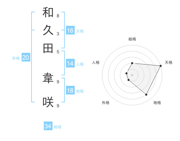 和久田 韋咲さんを姓名の画数から五運を鑑定