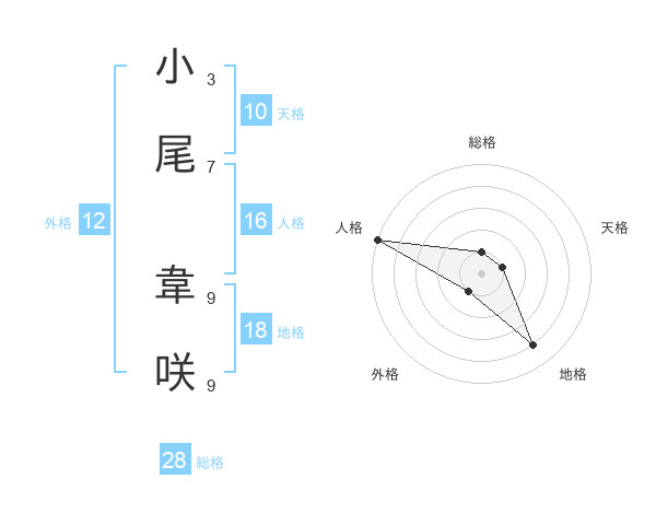小尾 韋咲さんの総格は28画の1点!