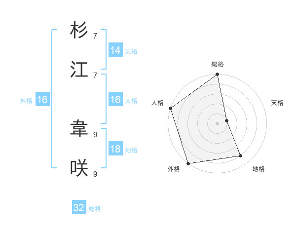 杉江 韋咲さんを姓名の画数から五運を鑑定