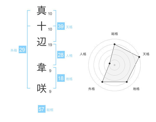 真十辺 韋咲さんを姓名の画数から五運を鑑定