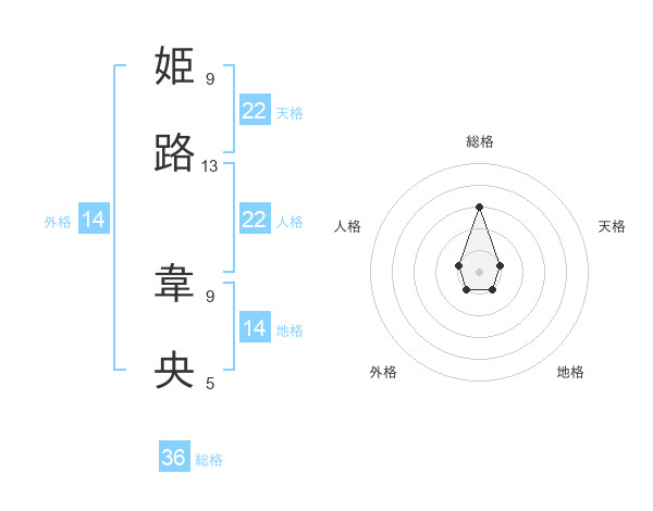 姫路 韋央さんを姓名の画数から五運を鑑定