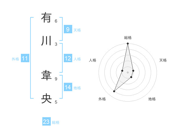 有川 韋央さんの総格は23画の5点!