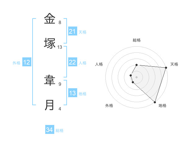 金塚 韋月さんの総格は34画の2点!