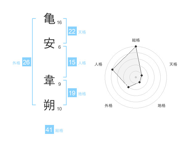 亀安 韋朔さんを姓名の画数から五運を鑑定