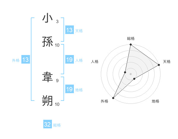 小孫 韋朔さんを姓名の画数から五運を鑑定