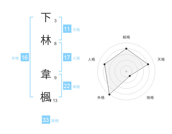 下林 韋楓さんの総格は33画の4点!