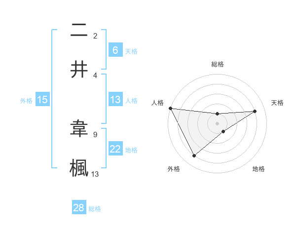 二井 韋楓さんを姓名の画数から五運を鑑定
