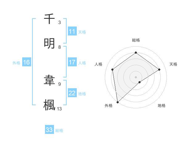 千明 韋楓さんの総格は33画の4点!