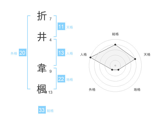 折井 韋楓さんを姓名の画数から五運を鑑定