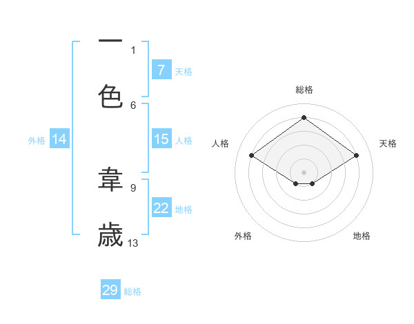 一色 韋歳さんを姓名の画数から五運を鑑定