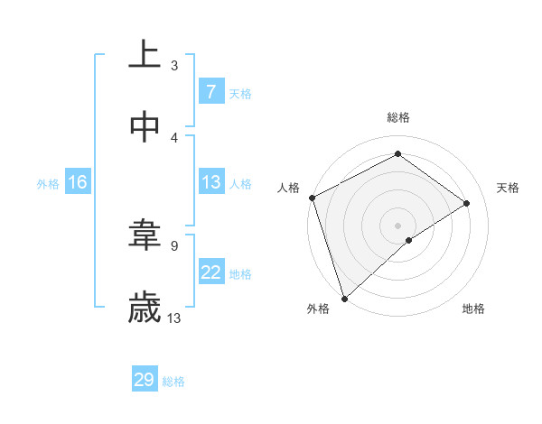 上中 韋歳さんの総格は29画の4点!