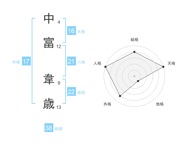 中富 韋歳さんの総格は38画の4点!