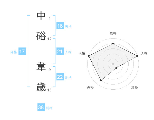 中硲 韋歳さんの総格は38画の4点!