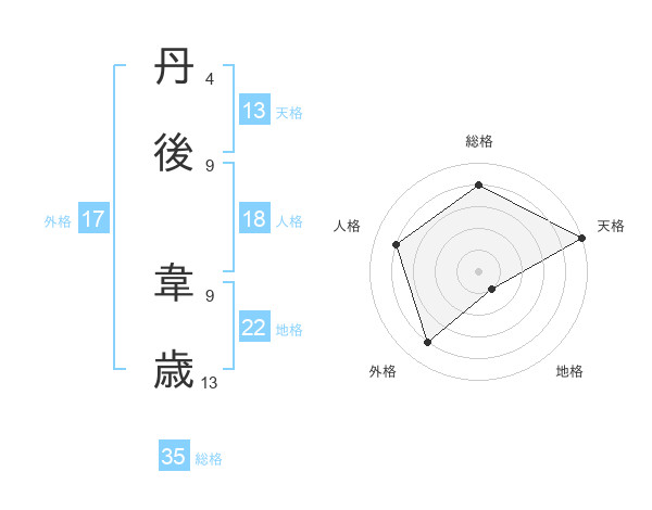 丹後 韋歳さんの天格は13画の5点!