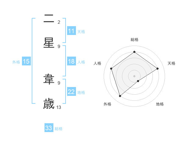 二星 韋歳さんの地格は22画の1点!