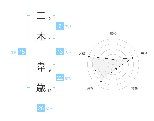 二木 韋歳さんの天格は6画の4点!