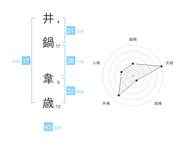 井鍋 韋歳さんを姓名の画数から五運を鑑定