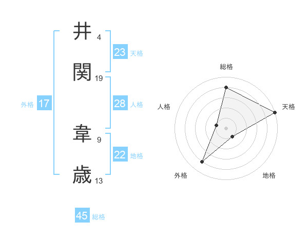 井関 韋歳さんの総格は45画の4点!