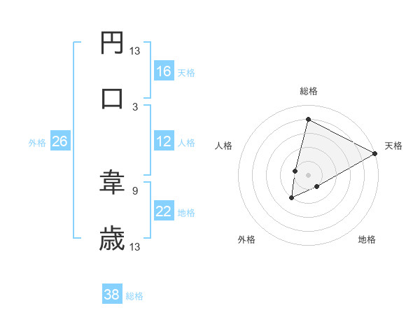 円口 韋歳さんを姓名の画数から五運を鑑定