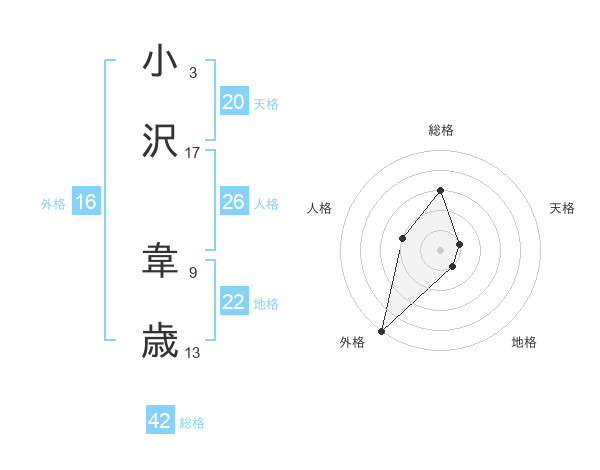 小沢 韋歳さんの総格は42画の3点!