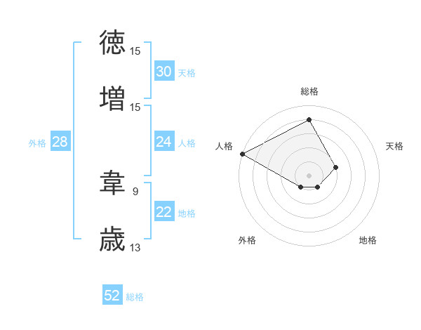 徳増 韋歳さんを姓名の画数から五運を鑑定