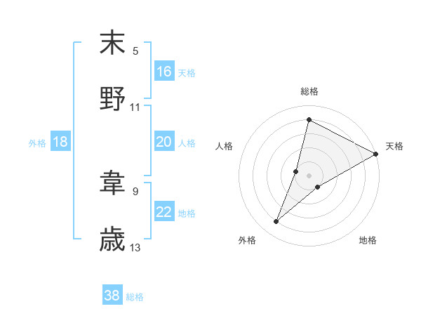 末野 韋歳さんの総格は38画の4点!